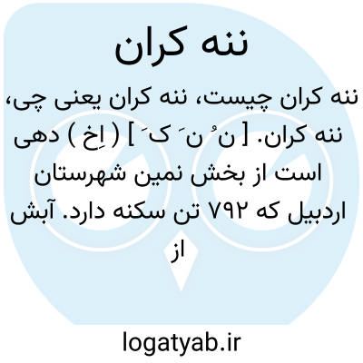ننه کران. [ ن ُ ن َ ک َ ] ( اِخ ) دهی است از بخش نمین شهرستان اردبیل که 792 تن سکنه دارد. آبش از رودخانه، محصولش غلات و حبوبات، شغل اهالی زراعت و گله داری است. ( از فرهنگ جغرافیایی ایران ج 4 ).