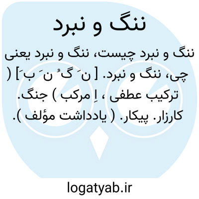 ننگ و نبرد. [ ن َ گ ُ ن َ ب َ] ( ترکیب عطفی، اِ مرکب ) جنگ. کارزار. پیکار. ( یادداشت مؤلف ). نیز رجوع به معنی بعدی شود: