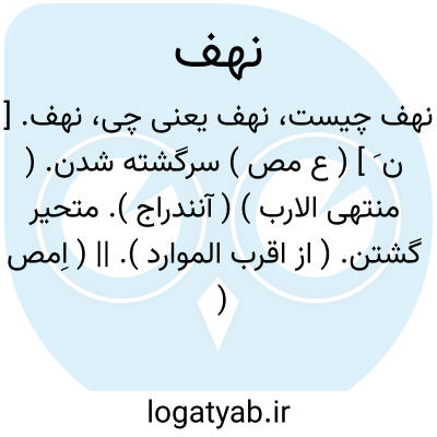 نهف. [ ن َ ] ( ع مص ) سرگشته شدن. ( منتهی الارب ) ( آنندراج ). متحیر گشتن. ( از اقرب الموارد ). || ( اِمص ) سرگشتگی. آشفتگی. حیرت. ( ناظم الاطباء ). تحیر. ( متن اللغة ) ( ناظم الاطباء ).