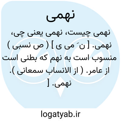 نهمی. [ ن َ می ی ] ( ص نسبی ) منسوب است به نهم که بطنی است از عامر. ( از الانساب سمعانی ).