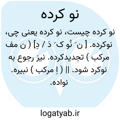 نوکرده. [ ن َ نُو ک َ دَ / دِ] ( ن مف مرکب ) تجدیدکرده. نیز رجوع به نوکرد شود. || ( اِ مرکب ) نبیره. نواده. ( ناظم الاطباء ).