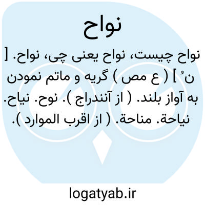 نواح. [ ن َوْ وا ] ( ع ص ) بسیار نوحه و زاری کننده. || ( اِ ) پرنده ای است شبیه قمری. ( از اقرب الموارد ).