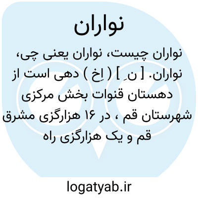 نواران. [ ن ِ ] ( اِخ ) دهی است از دهستان قنوات بخش مرکزی شهرستان قم، در 16 هزارگزی مشرق قم و یک هزارگزی راه سراجه، در جلگه معتدل هوائی واقع است و 300 تن سکنه دارد. آبش از قنات، محصولش غلات و پنبه و میوه ها و انار و انجیر و بادام، شغل اهالی زراعت و جوال بافی و گلیم بافی است. ( از فرهنگ جغرافیایی ایران ج 1 ).