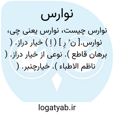 نوارس.[ ن ُ رِ ] ( اِ ) خیار دراز. ( برهان قاطع ). نوعی از خیار دراز. ( ناظم الاطباء ). خیارچنبر. ( فرهنگ فارسی معین ). || اسم یونانی نوعی از قتاد است، شاخ های او دراز و باریک و تا به قدر سه ذرع و برگش ریزه و مستدیر و بر جمیع اجزای او زغب شبیه به پشم، و گلش زرد و خوشبو و طعمش تند، و خار او مانند سوزن و صمغاو مابین سفیدی و سرخی، و در روم و حلب کثیرالوجود است... و در التیام عصب از مجربات [ است ] و از این جهت او را شجرةالعصب نامند. ( از تحفه حکیم مؤمن ). و آن را شجرةالقدس خوانند و مسواک العباسی و مسواک المسیح گویند. رجوع به تذکره ضریر انطاکی ص 352 شود.