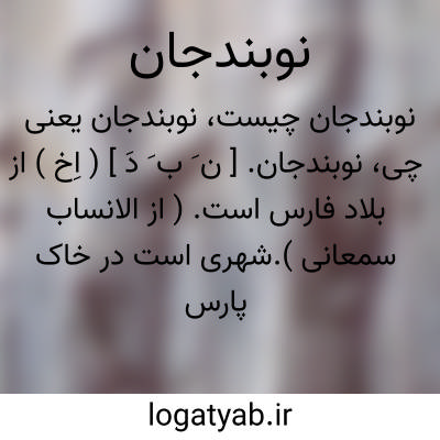 نوبندجان. [ ن َ ب َ دَ ] ( اِخ ) از بلاد فارس است. ( از الانساب سمعانی ).شهری است در خاک پارس از کوره شاپور در نزدیکی شعب بوان که به نزاهت و طراوت مشهور است. در بین این شهر و ارجان شانزده فرسخ فاصله است و با شیراز نیز در همین حدود فاصله دارد. ( از معجم البلدان ) ( از تاج العروس ). نوبنجان قلعه ای است به نوبندخان. ( از معجم البلدان ). نوبنجان از اعمال شاپور است. ( فارسنامه ابن بلخی ص 115 ). نوبنجان پیش از این شهری بود بزرگ و نیکو و در ایام فترت ابوسعد کازرونی به نوبتها آن را بغارتید کی مأوای شیر و گرگ و دد و دام بود و مردم از آنجا در جهان آواره شدند و خلایقی از ایشان در غربت بمردند و چون اتابک چاولی به پارس آمد و ابوسعد را برداشت آنجا روی به عمارت نهاد و امیدوار است کی به فر دولت قاهره ثبتهااﷲ تمام گردد. هوای آنجا گرمسیر است، معتدل و آب روان بسیار دارد و از همه انواع میوه ها و مشمومات بسیار... و قلعه ای سپید بر سنگ نوبنجان است... و به نوبنجان نخجیر کوهی باشد بیش از اندازه، و مردم نوبنجان متحیز باشند و به صلاح نزدیک. ( ازفارسنامه ابن بلخی ص 146 و 147 ). نوبندگان شهری است به ناحیت پارس، خرم و با نعمت و خواسته بسیار. ( حدود العالم ). نوبندگان شهری بوده است در فارس از کوره شاپور... و فیمابین آن و ارجان بیست وشش فرسخ فاصله است و تا به شیراز نیز به همین مقادیر، و معرب آن نوبندجان و نوبنجان نیز آمده است. ( از انجمن آرا ). رجوع به نوبندگان و نیز رجوع به ترجمه تقویم البلدان ص 372 و ابن اثیر ج 7 ص 122و نزهة القلوب ج 3 صص 127 - 129 و 189 و 225 و تاریخ سیستان ص 78 و 226 و 288 و فارسنامه ابن بلخی ص 151 و 158 و 162 و اخبار الدولة السلجوقیة ص 112 شود.