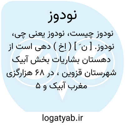 نودوز. [ ن َ ] ( اِخ ) دهی است از دهستان بشاریات بخش آبیک شهرستان قزوین، در 68 هزارگزی مغرب آبیک و 5 هزارگزی جاده بوئین به قزوین، در جلگه معتدل هوائی واقع است و 556 تن سکنه دارد. آبش از قنات، محصولش غلات و چغندرقند و پنبه، شغل مردمش زراعت و جاجیم بافی و جوراب بافی است. ( از فرهنگ جغرافیایی ایران ج 1 ).