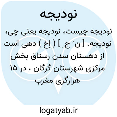 نودیجه. [ ن َ ج ِ ] ( اِخ ) دهی است از دهستان سدن رستاق بخش مرکزی شهرستان گرگان، در 15 هزارگزی مغرب گرگان، در دشت مرطوب معتدل هوائی واقع است و 805 تن سکنه دارد. شغل مردمش زراعت و گله داری و پارچه بافی و کرباس بافی است. ( از فرهنگ جغرافیایی ایران ج 3 ).