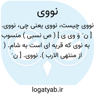 نووی. [ ن َ وَ وی ی ] ( ص نسبی ) منسوب به نوا است و آن شهر کوچکی است از توابع ناحیه حوران از نواحی دمشق که منزل ایوب نبی بود و قبر سام بن نوح نیز در آنجاست. ( از ریحانة الادب ج 4 ص 252، نقل از مراصدالاطلاع ).