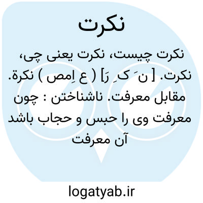 نکرت. [ ن َ ک ِ رَ] ( ع اِمص ) نکرة. مقابل معرفت. ناشناختن: چون معرفت وی را حبس و حجاب باشد آن معرفت نکرت بودو آن نعمت نقمت و آن عطا غطا. ( کشف المحجوب ص 221 ).