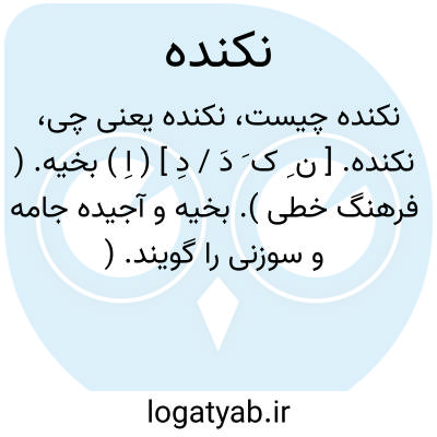 عرض نکنده هاش پریشان فراخ و تنگ.نظام قاری.- نکنده زدن؛ بخیه زدن. آجیده کردن: شِطاب؛ آنچه بدان نکنده زنند گلیم را از پشم و جز آن. ( منتهی الارب ).التضریب؛ نکنده زدن. ( مجمل اللغة ) ( از منتهی الارب ) ( تاج المصادر ).