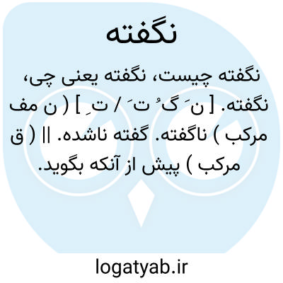 نگفته. [ ن َ گ ُ ت َ / ت ِ ] ( ن مف مرکب ) ناگفته. گفته ناشده. || ( ق مرکب ) پیش از آنکه بگوید. قبل از آنکه اظهاری کند و لب به سخن بگشاید.