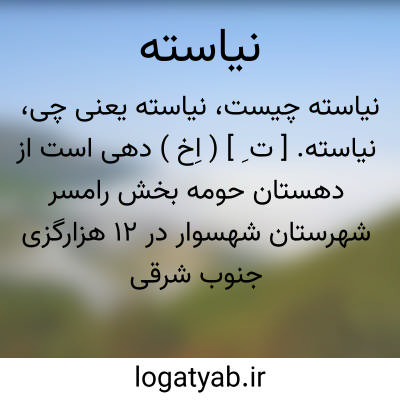 نیاسته. [ ت ِ ] ( اِخ ) دهی است از دهستان حومه بخش رامسر شهرستان شهسوار در 12 هزارگزی جنوب شرقی رامسر و 2 هزارگزی جنوب جاده رامسر به شهسوار بر کنار رودخانه و در دشت معتدل هوای مرطوبی واقع است و 300 تن سکنه دارد. آبش از رود نسارود، محصول عمده اش برنج و مرکبات و شغل اهالی زراعت است. ( از فرهنگ جغرافیائی ایران ج 3 ).