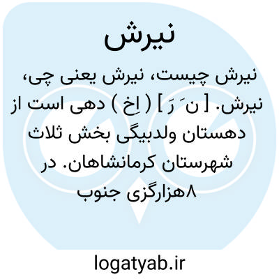 نیرش. [ ن َ رَ ] ( اِخ ) دهی است از دهستان ولدبیگی بخش ثلاث شهرستان کرمانشاهان. در 8هزارگزی جنوب نهرآب و 6هزارگزی قلعه میرآباد، در منطقه کوهستانی سردسیری واقع است و200 تن سکنه دارد. آبش از چشمه های متعدد، محصولش غلات، لبنیات، برنج، ذرت، گردو، زردآلو و شغل مردمش زراعت و گله داری است. ( از فرهنگ جغرافیائی ایران ج 5 ).