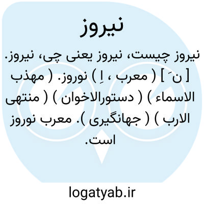 نیروز. [ ن َ ] ( معرب، اِ ) نوروز. ( مهذب الاسماء ) ( دستورالاخوان ) ( منتهی الارب ) ( جهانگیری ). معرب نوروز است. رجوع به نوروز در این لغت نامه و نیز رجوع به المعرب جوالیقی ج 1 ص 340 و الجماهر ص 53 و دزی ج 6 ص 742 شود: روز نیروز ساعت دوم... از ابرشتجان بیرون آمد. ( تاریخ قم ص 243 ).