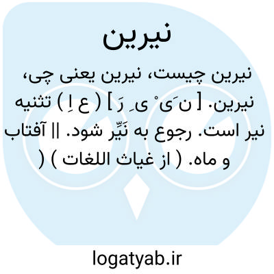 نیرین. [ ن َی ْ ی ِ رَ ] ( ع اِ ) تثنیه نیر است. رجوع به نَیِّر شود. || آفتاب و ماه. ( از غیاث اللغات ) ( از آنندراج ). رجوع به نیر و نیر اعظم و نیر اصغر و نیز رجوع به نیران شود.