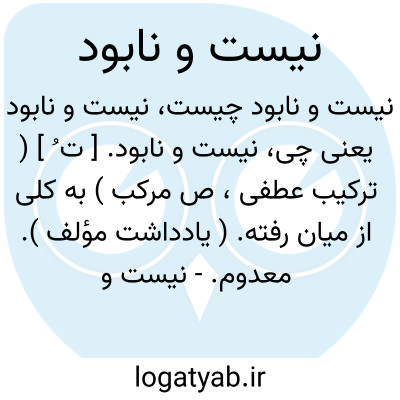 نیست و نابود. [ ت ُ ] ( ترکیب عطفی، ص مرکب ) به کلی از میان رفته. ( یادداشت مؤلف ). معدوم.