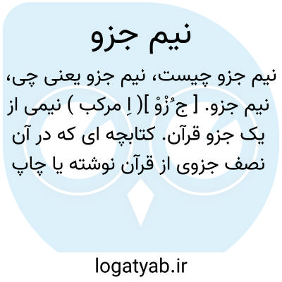 نیم جزو. [ ج ُزْوْ ]( اِ مرکب ) نیمی از یک جزو قرآن. کتابچه ای که در آن نصف جزوی از قرآن نوشته یا چاپ شده باشد. نیم جزوی.