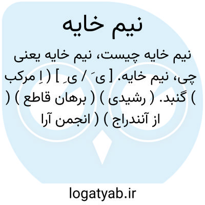 نیم خایه. [ ی َ / ی ِ ] ( اِ مرکب ) گنبد. ( رشیدی ) ( برهان قاطع ) ( از آنندراج ) ( انجمن آرا ). قبه. ( ناظم الاطباء ). زیرا که بر نیم بیضه مرغ ماند. ( انجمن آرا ). || کنایه از فلک به اعتبار آنکه کروی شکل است و همیشه نیم به نظر می آید و نیم از حجاب زمین مخفی می ماند. ( غیاث اللغات ). کنایه از آسمان ظاهر است که نصف آسمان باشد. ( برهان قاطع ):