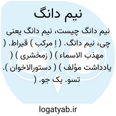 نیم دانگ. ( اِ مرکب ) قیراط. ( مهذب الاسماء ) ( زمخشری ) ( یادداشت مؤلف ) ( دستورالاخوان ). تسو. یک جو. ( یادداشت مؤلف ) ( از زمخشری ).دوازده یک چیزی. یک دوازدهم چیزی. ( یادداشت مؤلف ).، نیمدانگ. ( اِخ ) دهی است از بخش سنجابی شهرستان کرمانشاهان در 17هزارگزی جنوب شرقی کوزران، در دامنه سردسیری واقع است و یکصد تن سکنه دارد. آبش از چاه، محصولش غلات و حبوبات دیم و لبنیات و شغل اهالی زراعت و گله داری است. ( از فرهنگ جغرافیائی ایران ج 5 ).