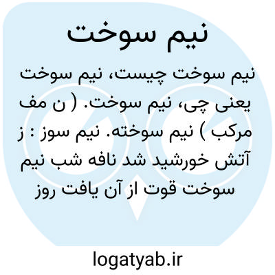 (صفت ) ۱ - آنچه کخ کاملا سوخته نباشد: (( هیزم نیم سوخته ) ). ۲ - قطعه ای از پارچ. سوخته.