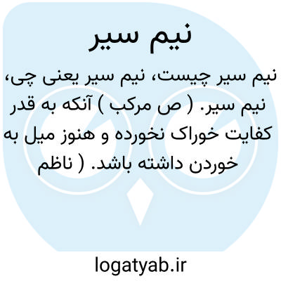 نیم سیر. ( ص مرکب ) آنکه به قدر کفایت خوراک نخورده و هنوز میل به خوردن داشته باشد. ( ناظم الاطباء ). که به تمام رفع گرسنگی او نشده باشد. ( یادداشت مؤلف ). که هنوز اشتها دارد: حکیمان دیردیر خورند و عابدان نیم سیر. ( گلستان ). || نیم راضی. ( ناظم الاطباء ). که میل و حرصش تمام نشده است و هنوز می خواهد. که کاملاً خرسند و راضی نیست:
