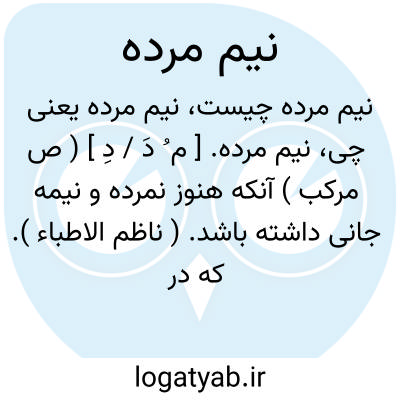 ( صفت ) ۱ - کسی که در شرف مرگ است ولی هنوز نمرده: (( این خادم را بباید کشتن و دست بر حلق وی نهاد و محکم بیفشرد که خود نیم مرده بود. ) ) ۲ - نیم خاموش (( بکردار چراغی نیم مرده که هر ساعت فزون گرددش روغن. ) ) ( منوچهری. د. چا. ۶۳: ۲ )
