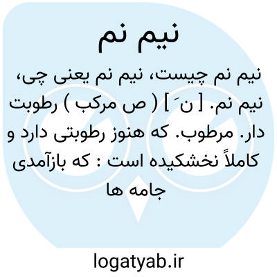 نیم نم. [ ن َ ] ( ص مرکب ) رطوبت دار. مرطوب. که هنوز رطوبتی دارد و کاملاً نخشکیده است: