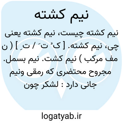 نیم کشته. [ ک ُ ت َ / ت ِ ] ( ن مف مرکب ) نیم کشت. نیم بسمل. مجروح محتضری که رمقی ونیم جانی دارد: لشکر چون پادشاه را نیم کشته دیدند همه راه هزیمت گرفتند. ( اسکندرنامه خطی ).