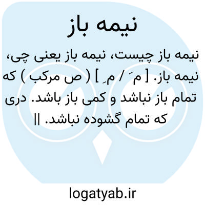 ( صفت ) آنچه که اندکی باز باشد: نیمه مفتوح: ( چشمانش خواب آلود و نیمه باز بود. ) )