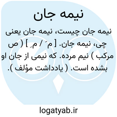 نیمه جان. [ م َ / م ِ ] ( ص مرکب ) نیم مرده. که نیمی از جان او بشده است. ( یادداشت مؤلف ). نیم جان. رجوع به نیم جان شود.