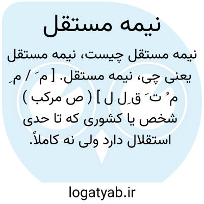 نیمه مستقل. [ م َ / م ِ م ُ ت َ ق ِل ل ] ( ص مرکب ) شخص یا کشوری که تا حدی استقلال دارد ولی نه کاملاً. ( فرهنگ فارسی معین ). مملکتی که به ظاهر مستقل است، اما در عمل مستعمره و تحت الحمایه دیگران و در حقیقت نیمه مستعمره است.