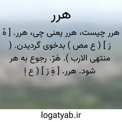 هرر. [ هََ رَ ] ( ع مص ) بدخوی گردیدن. ( منتهی الارب ). هَرّ. رجوع به هر شود.