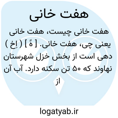 هفت خانی. [ هََ ] ( اِخ ) دهی است از بخش خزل شهرستان نهاوند که 50 تن سکنه دارد. آب آن از چشمه و محصول عمده اش غله، توتون، کتیرا و لبنیات است. ( از فرهنگ جغرافیائی ایران ج 5 ).