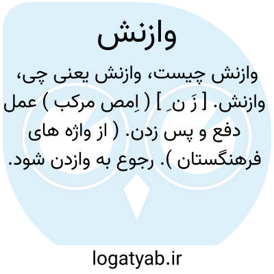 وازنش. [ زَ ن ِ ] ( اِمص مرکب ) عمل دفع و پس زدن. ( از واژه های فرهنگستان ). رجوع به وازدن شود.