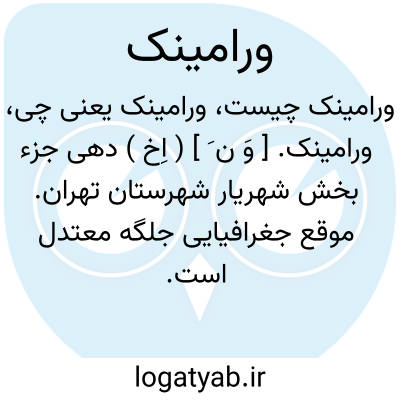 ورامینک. [ وَ ن َ ] ( اِخ ) دهی جزء بخش شهریار شهرستان تهران. موقع جغرافیایی جلگه معتدل است. سکنه آن 120 تن و آب آن از قنات و در بهار از رودخانه کرج تأمین می شود و محصول آن غلات، بنشن، صیفی، باغات و شغل اهالی زراعت است. راه ماشین رو دارد. ( از فرهنگ جغرافیایی ایران ج 1 ).
