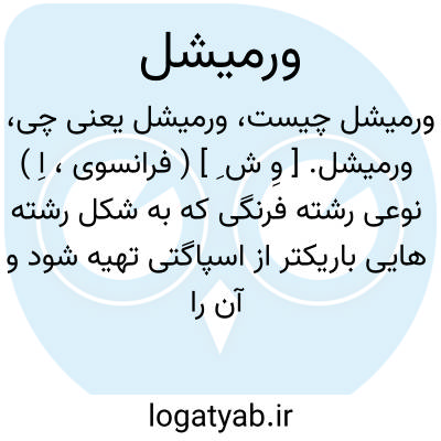ورمیشل. [ وِ ش ِ ] ( فرانسوی، اِ ) نوعی رشته فرنگی که به شکل رشته هایی باریکتر از اسپاگتی تهیه شود و آن را در سوپ و آش به کاربرند. ( فرهنگ فارسی معین ).