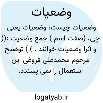 (صفت اسم ) جمع وضعیت:(( و آنرا وضعیات خوانند. ) ) توضیح مرحوم محمدعلی فروغی این استعمال را نمی پسندد.