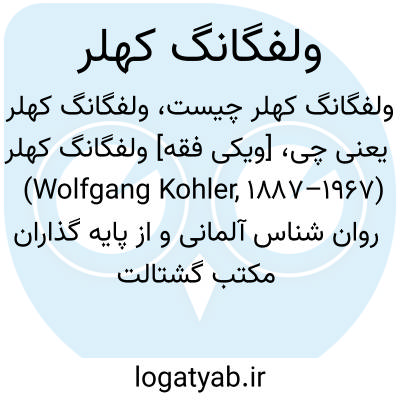 [ویکی فقه] ولفگانگ کهلر (Wolfgang Kohler, ۱۸۸۷–۱۹۶۷) روان شناس آلمانی و از پایه گذاران مکتب گشتالت بود. او مانند پیاژه، ورتهایمر، راجرز و... از گروه شناخت گرایان هست.کهلر ابتکارات متعددی مانند ارتباط دادن فیزیک به روان شناسی، اثبات یادگیری از راه بینش حیوانات و... در روان شناسی داشت.