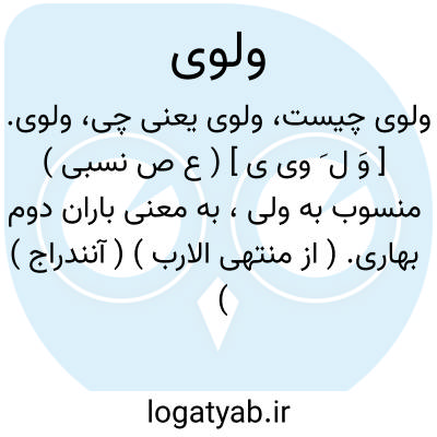 ولوی. [ وَ ل َ وی ی ] ( ع ص نسبی ) منسوب به ولی، به معنی باران دوم بهاری. ( از منتهی الارب ) ( آنندراج ) ( اقرب الموارد ). || منسوب به ولی، مرد و نگهبان و دوست. ولی خدا، مرد خدا.