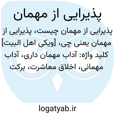 [ویکی اهل البیت] کلید واژه: آداب مهمان داری، آداب مهمانی، اخلاق معاشرت، برکت خانه، حق مهمان، دوری از اسراف، مهمان، مهمان دوستی، مهمان رزقش همراه اوست، مهمان ناخوانده، مهمان نوازی، مهمانی، نیکی کردن به مهمان