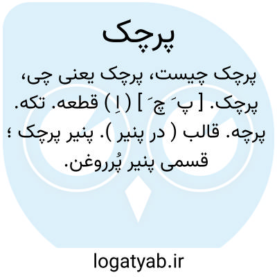 پرچک. [ پ َ چ َ ] ( اِ ) قطعه. تکه. پرچه. قالب ( در پنیر ). پنیر پرچک؛ قسمی پنیر پُرروغن.