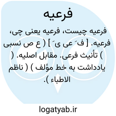 فرعیه. [ ف َ عی ی َ ] ( ع ص نسبی ) تأنیث فرعی. مقابل اصلیه. ( یادداشت به خط مؤلف ) ( ناظم الاطباء ).