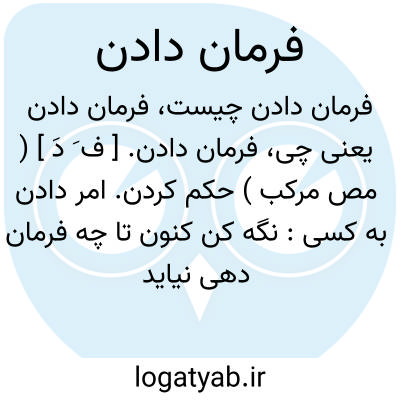 ( مصدر ) دستور دادن حکم کردن امر کردن فرمودن توضیح این مصدر بدون حرف اضافه ( او را فرمان داد ) و با حرف اضافه ( باو فرمان داد ) استعمال شود: اگر پیمان کند با من منم در خط پیمانش و گر فرمان دهد بر من منم در بند فرمانش. ( معزی. ۴۲۴ )