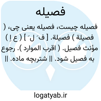 ( فصیلة ) فصیلة. [ ف َ ل َ ] ( ع اِ ) مؤنث فصیل. ( اقرب الموارد ). رجوع به فصیل شود. || شتربچه ماده. || گروه و خویشان و نزدیکان مرد. ( منتهی الارب ). وگویند نزدیکترین پدرانش بدو. ( از اقرب الموارد ). دودمان. ( ترجمان علامه جرجانی ). || پاره ای از گوشت ران. || پاره ای از اعضای بدن. ( منتهی الارب ) ( از اقرب الموارد ). || طبقه ای ازطبقات انساب عرب. ( از اقرب الموارد ). یکی از طبقات ششگانه عرب. ( سمعانی ). ج، فصائل. ( اقرب الموارد ).