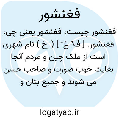 فغنشور. [ ف ُ غ َ ] ( اِخ ) نام شهری است از ملک چین و مردم آنجا بغایت خوب صورت و صاحب حسن می شوند و جمیع بتان و بتگران در آن شهر میباشند. ( برهان ). جای بتان و بتگران. ( حاشیه فرهنگ اسدی نسخه نخجوانی ):
