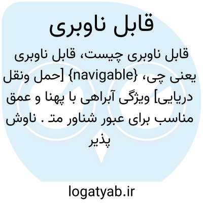 {navigable} [حمل ونقل دریایی] ویژگی آبراهی با پهنا و عمق مناسب برای عبور شناور متـ. ناوش پذیر