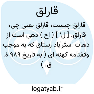 قارلق. [ ل ُ ] ( اِخ ) دهی است از دهات استرآباد رستاق که به موجب وقفنامه کهنه ای ( به تاریخ 989 هَ. ق. ) که فعلاً در دست سادات شیرنگ است در ناحیه فخر عمادالدوله واقع است. این ده مشتمل بر دو ناحیه است: قارلق عُلیا قارلق سفلی. ( از ترجمه مازندران و استرآباد رابینو ص 170 ).