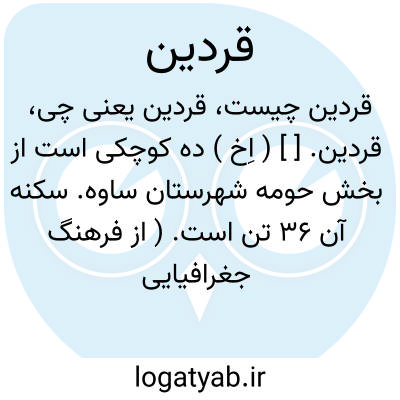 قردین. [ ] ( اِخ ) ده کوچکی است از بخش حومه شهرستان ساوه. سکنه آن 36 تن است. ( از فرهنگ جغرافیایی ایران ج 1 ).