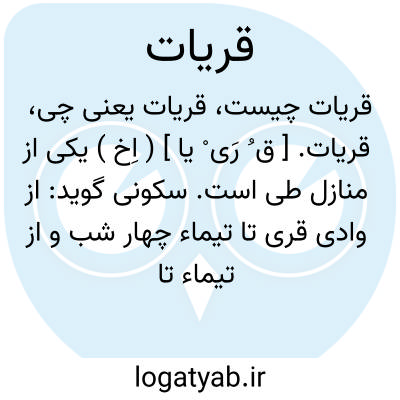 قریات. [ ق ُ رَی ْ یا ] ( اِخ ) یکی از منازل طی است. سکونی گوید: از وادی قری تا تیماء چهار شب و از تیماء تا قریات سه یا چهار شب مسافت است. وی گوید: قریات نام دومه و سکاکه و قاره است. ( از معجم البلدان ).