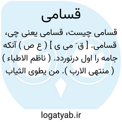 قسامی. [ ق َ می ی ] ( ع ص ) آنکه جامه را اول درنوردد. ( ناظم الاطباء ) ( منتهی الارب ). من یطوی الثیاب اول طیها حتی تنکسر علی طیه. ( اقرب الموارد ). آنکه جامه درپیچد. ( مهذب الاسماء ). || اسبی که از جانبی اقرح ( پیشانی سفید ) و از جانبی رباع باشد. ( منتهی الارب )( اقرب الموارد ). || ( اِ ) هرچه میان دو چیز باشد. ( منتهی الارب ) ( اقرب الموارد ) ( ناظم الاطباء ).